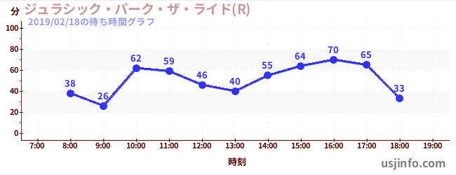• ジュラシック・パーク・ザ・ライド(R)$B$N(B2019年02月18日の待ち時間