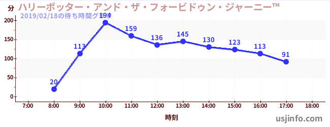 • ハリーポッター・アンド・ザ・フォービドゥン・ジャーニー™$B$N(B2019年02月18日の待ち時間