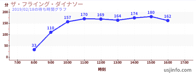 • ザ・フライング・ダイナソー$B$N(B2019年02月18日の待ち時間