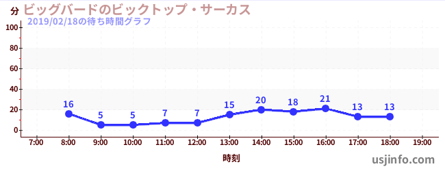 • ビッグバードのビックトップ・サーカス$B$N(B2019年02月18日の待ち時間