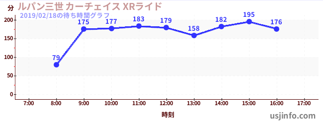 • ルパン三世 カーチェイス XRライド$B$N(B2019年02月18日の待ち時間