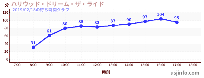 • ハリウッド・ドリーム・ザ・ライド$B$N(B2019年02月18日の待ち時間
