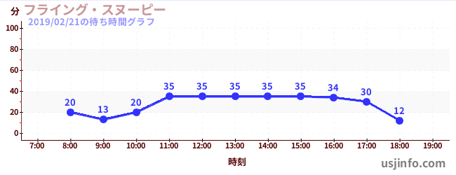 • フライング・スヌーピー$B$N(B2019年02月21日の待ち時間