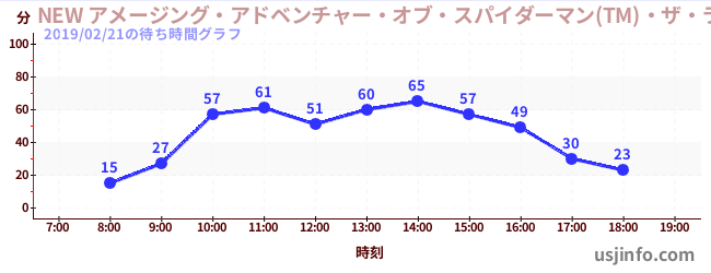 • NEW アメージング・アドベンチャー・オブ・スパイダーマン(TM)・ザ・ライド 4K3D$B$N(B2019年02月21日の待ち時間