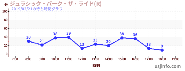 • ジュラシック・パーク・ザ・ライド(R)$B$N(B2019年02月21日の待ち時間
