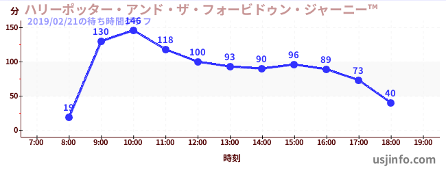 • ハリーポッター・アンド・ザ・フォービドゥン・ジャーニー™$B$N(B2019年02月21日の待ち時間