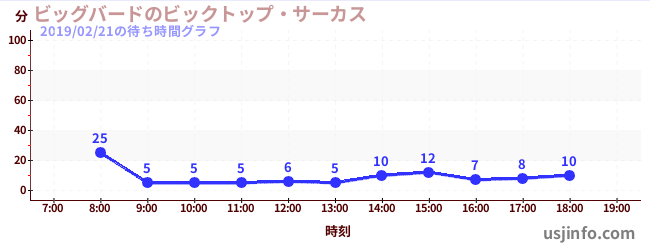 • ビッグバードのビックトップ・サーカス$B$N(B2019年02月21日の待ち時間