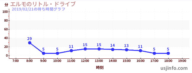• エルモのリトル・ドライブ$B$N(B2019年02月21日の待ち時間