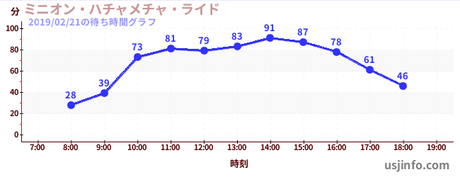 • ミニオン・ハチャメチャ・ライド$B$N(B2019年02月21日の待ち時間