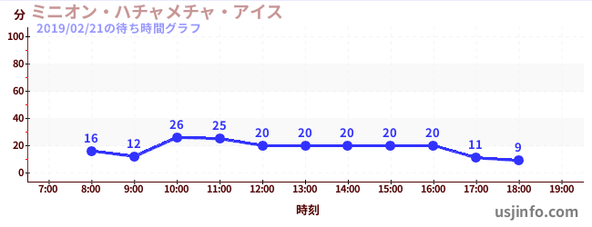 • ミニオン・ハチャメチャ・アイス$B$N(B2019年02月21日の待ち時間
