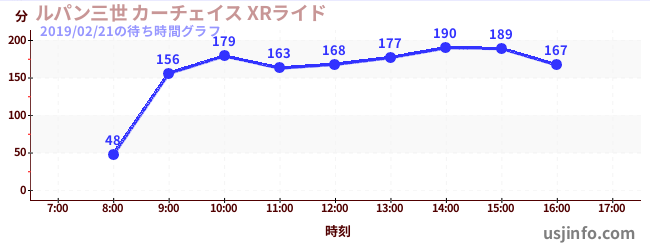 • ルパン三世 カーチェイス XRライド$B$N(B2019年02月21日の待ち時間