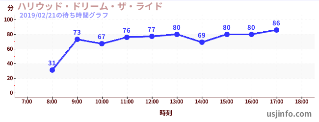 • ハリウッド・ドリーム・ザ・ライド$B$N(B2019年02月21日の待ち時間