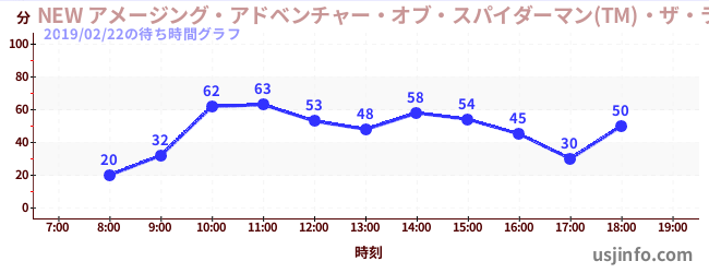 • NEW アメージング・アドベンチャー・オブ・スパイダーマン(TM)・ザ・ライド 4K3D$B$N(B2019年02月22日の待ち時間