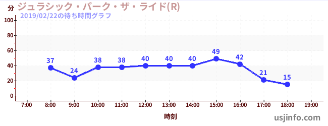 • ジュラシック・パーク・ザ・ライド(R)$B$N(B2019年02月22日の待ち時間