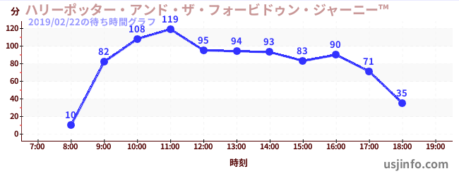 • ハリーポッター・アンド・ザ・フォービドゥン・ジャーニー™$B$N(B2019年02月22日の待ち時間