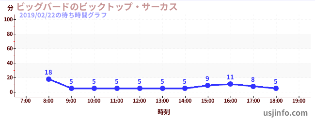 • ビッグバードのビックトップ・サーカス$B$N(B2019年02月22日の待ち時間