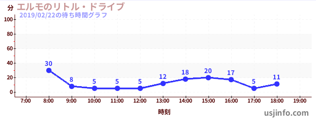 • エルモのリトル・ドライブ$B$N(B2019年02月22日の待ち時間