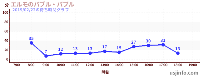 • エルモのバブル・バブル$B$N(B2019年02月22日の待ち時間