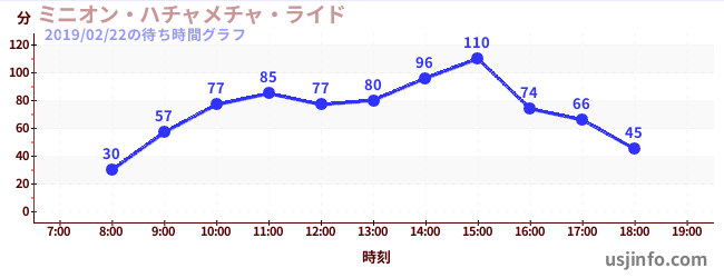 • ミニオン・ハチャメチャ・ライド$B$N(B2019年02月22日の待ち時間