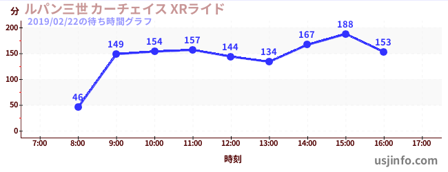 • ルパン三世 カーチェイス XRライド$B$N(B2019年02月22日の待ち時間