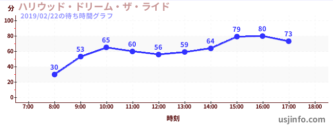 • ハリウッド・ドリーム・ザ・ライド$B$N(B2019年02月22日の待ち時間