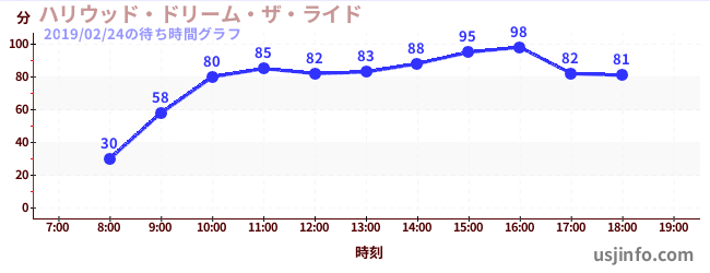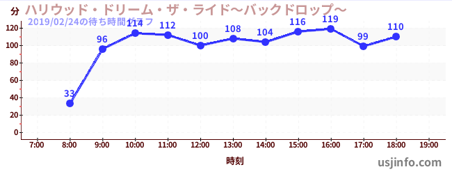 • ハリウッド・ドリーム・ザ・ライド$B$N(B2019年02月24日の待ち時間