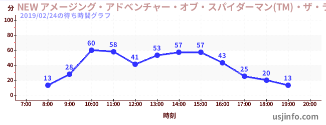 • NEW アメージング・アドベンチャー・オブ・スパイダーマン(TM)・ザ・ライド 4K3D$B$N(B2019年02月24日の待ち時間