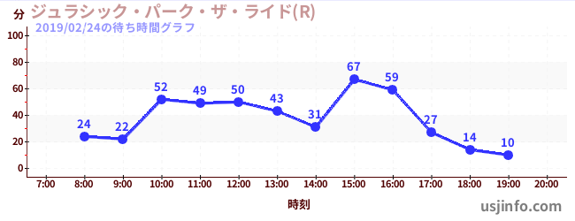 • ジュラシック・パーク・ザ・ライド(R)$B$N(B2019年02月24日の待ち時間