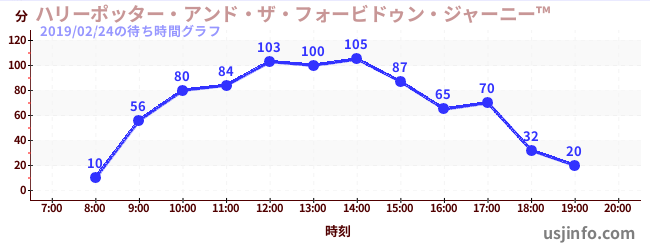 • ハリーポッター・アンド・ザ・フォービドゥン・ジャーニー™$B$N(B2019年02月24日の待ち時間