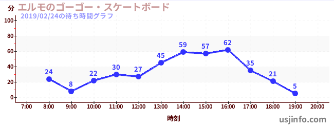 • エルモのゴーゴー・スケートボード$B$N(B2019年02月24日の待ち時間
