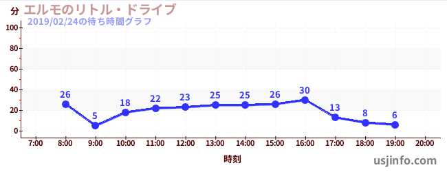 • エルモのリトル・ドライブ$B$N(B2019年02月24日の待ち時間