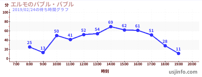 • エルモのバブル・バブル$B$N(B2019年02月24日の待ち時間