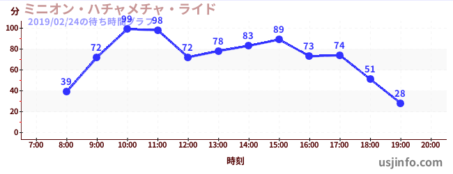 • ミニオン・ハチャメチャ・ライド$B$N(B2019年02月24日の待ち時間