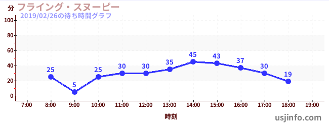 • フライング・スヌーピー$B$N(B2019年02月26日の待ち時間