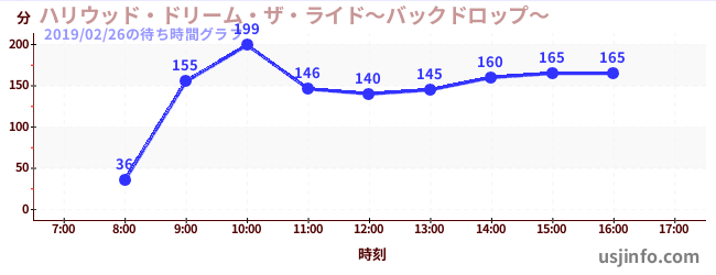 • ハリウッド・ドリーム・ザ・ライド〜バックドロップ〜$B$N(B2019年02月26日の待ち時間