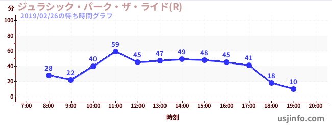 • ジュラシック・パーク・ザ・ライド(R)$B$N(B2019年02月26日の待ち時間