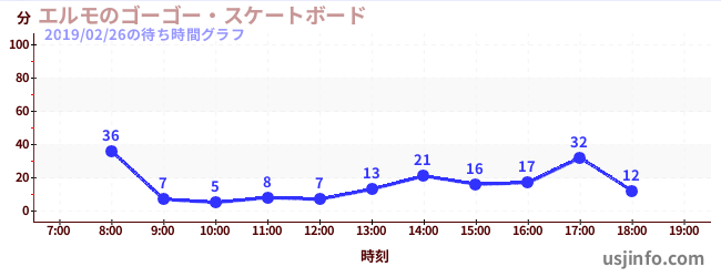 • エルモのゴーゴー・スケートボード$B$N(B2019年02月26日の待ち時間