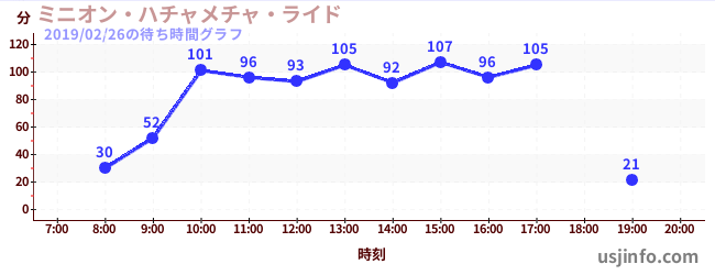 • ミニオン・ハチャメチャ・ライド$B$N(B2019年02月26日の待ち時間