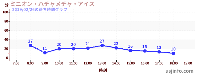 • ミニオン・ハチャメチャ・アイス$B$N(B2019年02月26日の待ち時間
