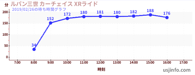 • ルパン三世 カーチェイス XRライド$B$N(B2019年02月26日の待ち時間