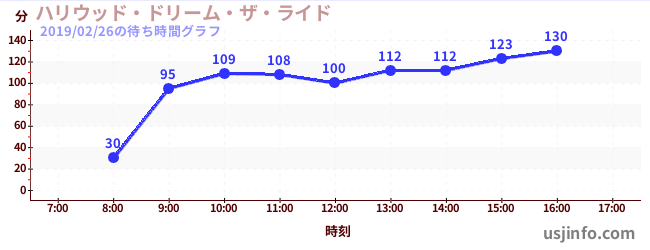 • ハリウッド・ドリーム・ザ・ライド$B$N(B2019年02月26日の待ち時間