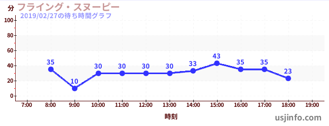 • フライング・スヌーピー$B$N(B2019年02月27日の待ち時間