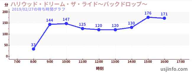 • ハリウッド・ドリーム・ザ・ライド$B$N(B2019年02月27日の待ち時間