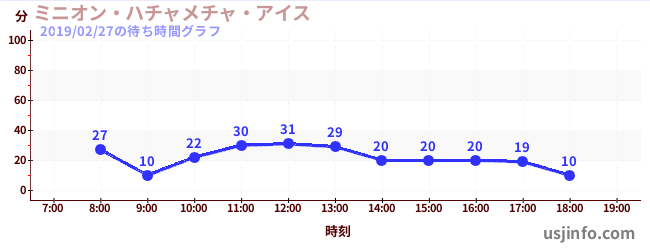 • ミニオン・ハチャメチャ・アイス$B$N(B2019年02月27日の待ち時間