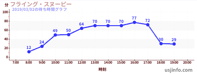 • フライング・スヌーピー$B$N(B2019年03月02日の待ち時間