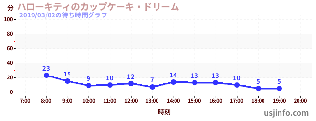 • ハローキティのカップケーキ・ドリーム$B$N(B2019年03月02日の待ち時間