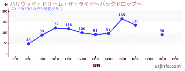 • ハリウッド・ドリーム・ザ・ライド〜バックドロップ〜$B$N(B2019年03月02日の待ち時間