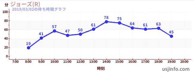 • ジョーズ(R)$B$N(B2019年03月02日の待ち時間