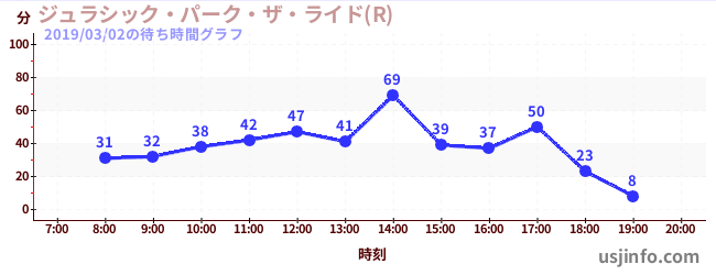 • ジュラシック・パーク・ザ・ライド(R)$B$N(B2019年03月02日の待ち時間