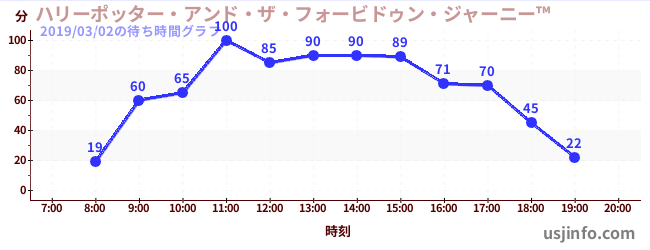 • ハリーポッター・アンド・ザ・フォービドゥン・ジャーニー™$B$N(B2019年03月02日の待ち時間